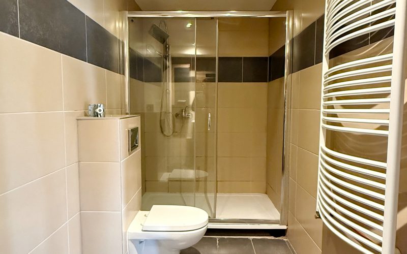 Laminatboden/Fliesen; beheizt wird mit einer Gas-Zentralheizung