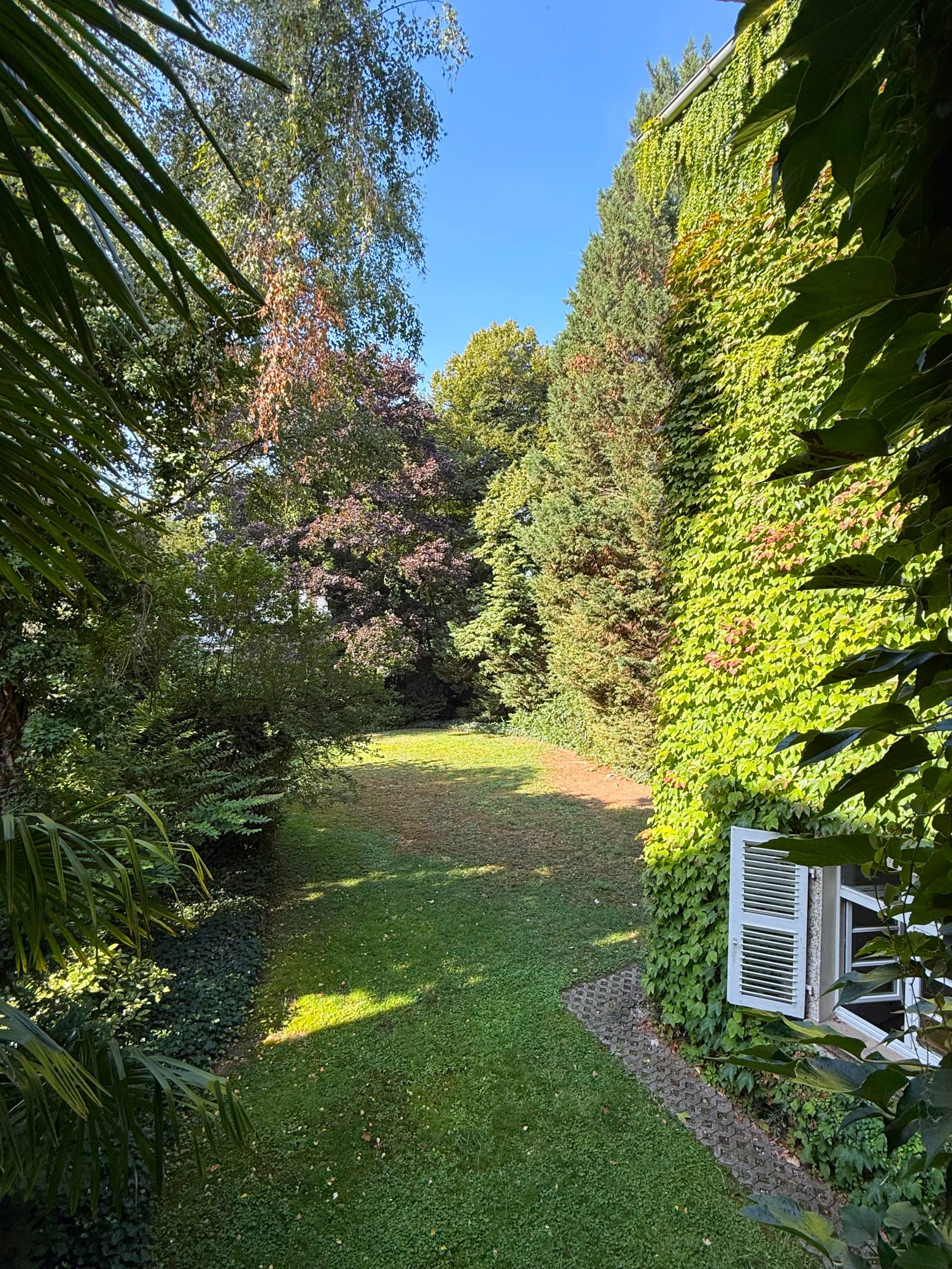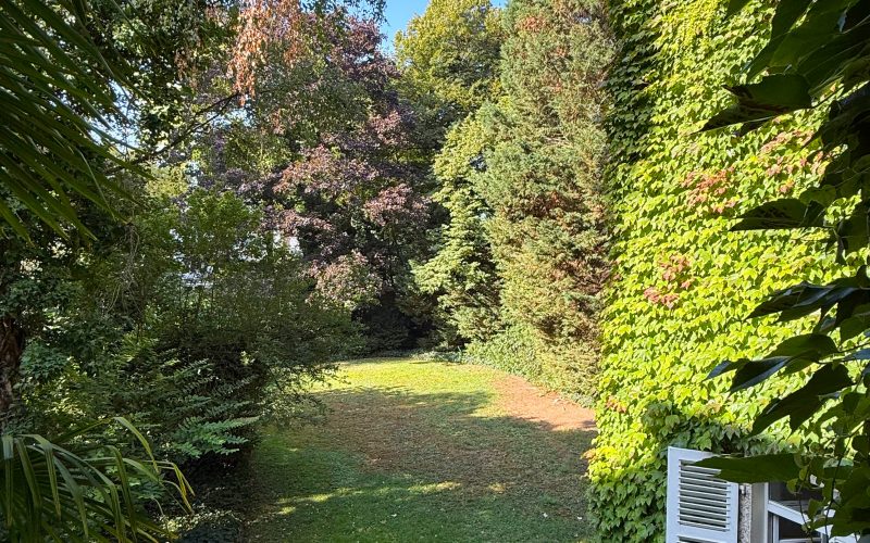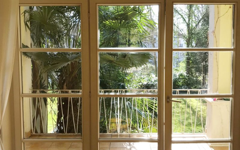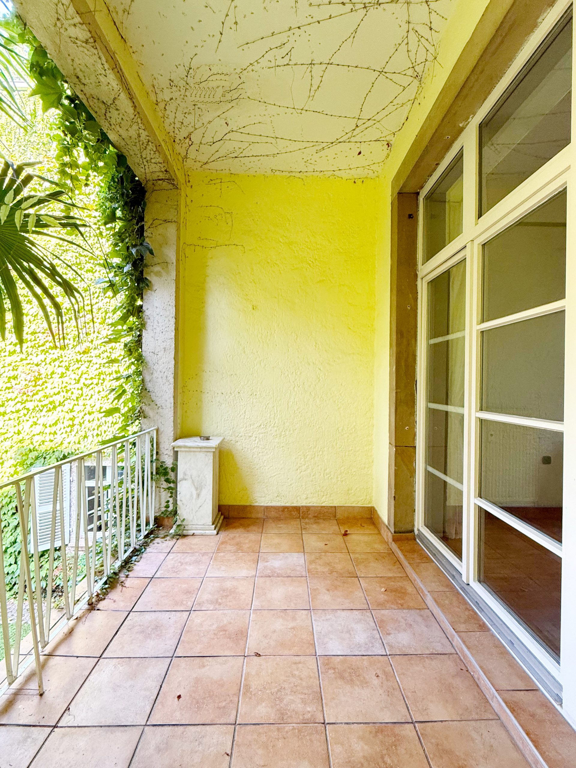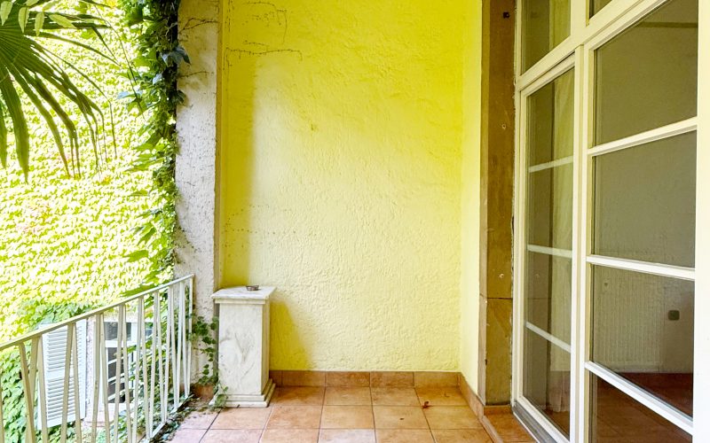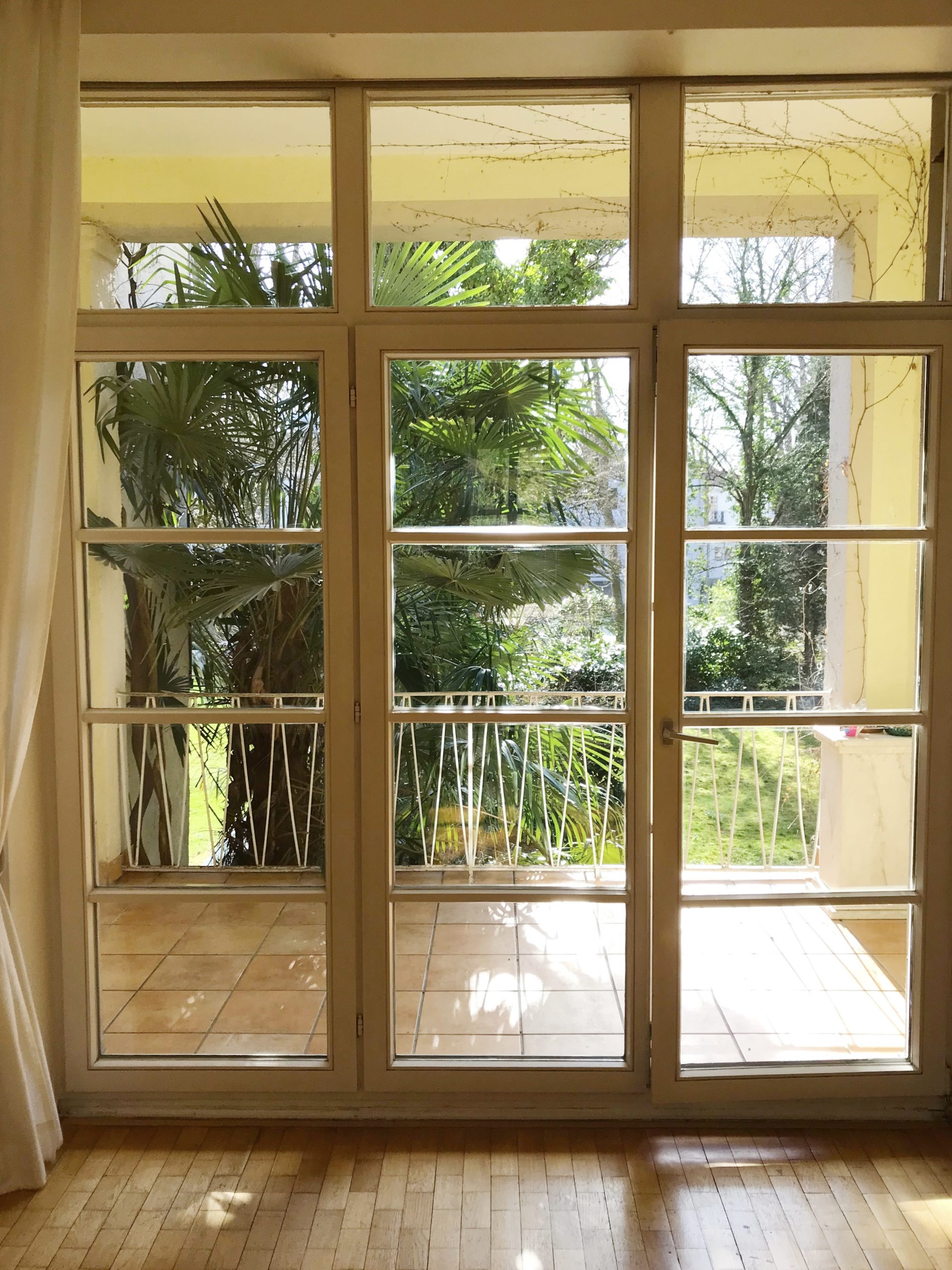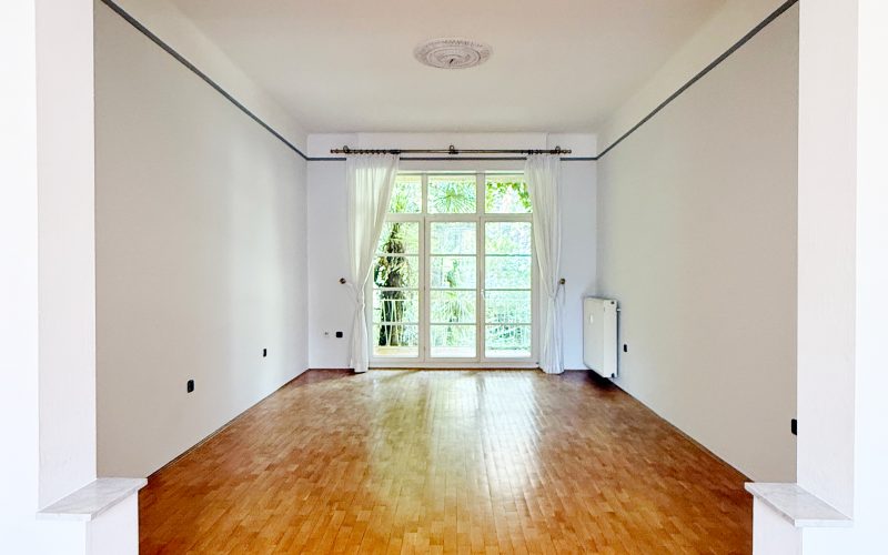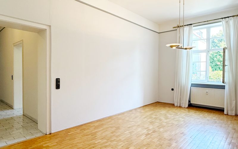 Herzstück der Wohnung ist der großzügige Wohn- und Essbereich mit ca. 47 m², hochwertigem Eichenparkett mit direktem Zugang zum Balkon. Von hier genießen Sie den Blick in den liebevoll angelegten Palmengarten. Je nach Möblierung lässt sich der Raum flexibel in zwei Bereiche unterteilen.
