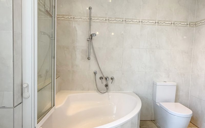 Das Schlafzimmer ist ebenfalls sehr geräumig und mit einem maßgefertigten, beleuchteten Spiegelkleiderschrank ausgestattet, der viel Stauraum bietet.