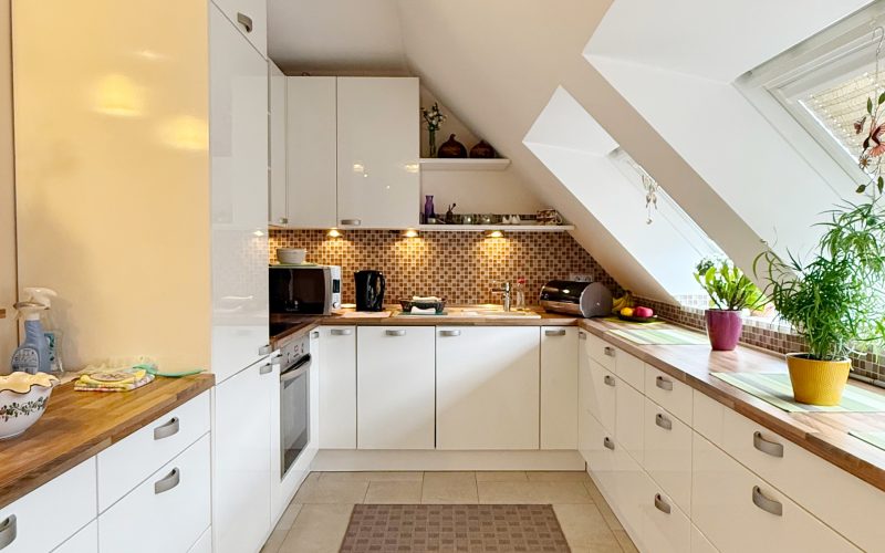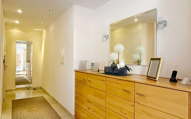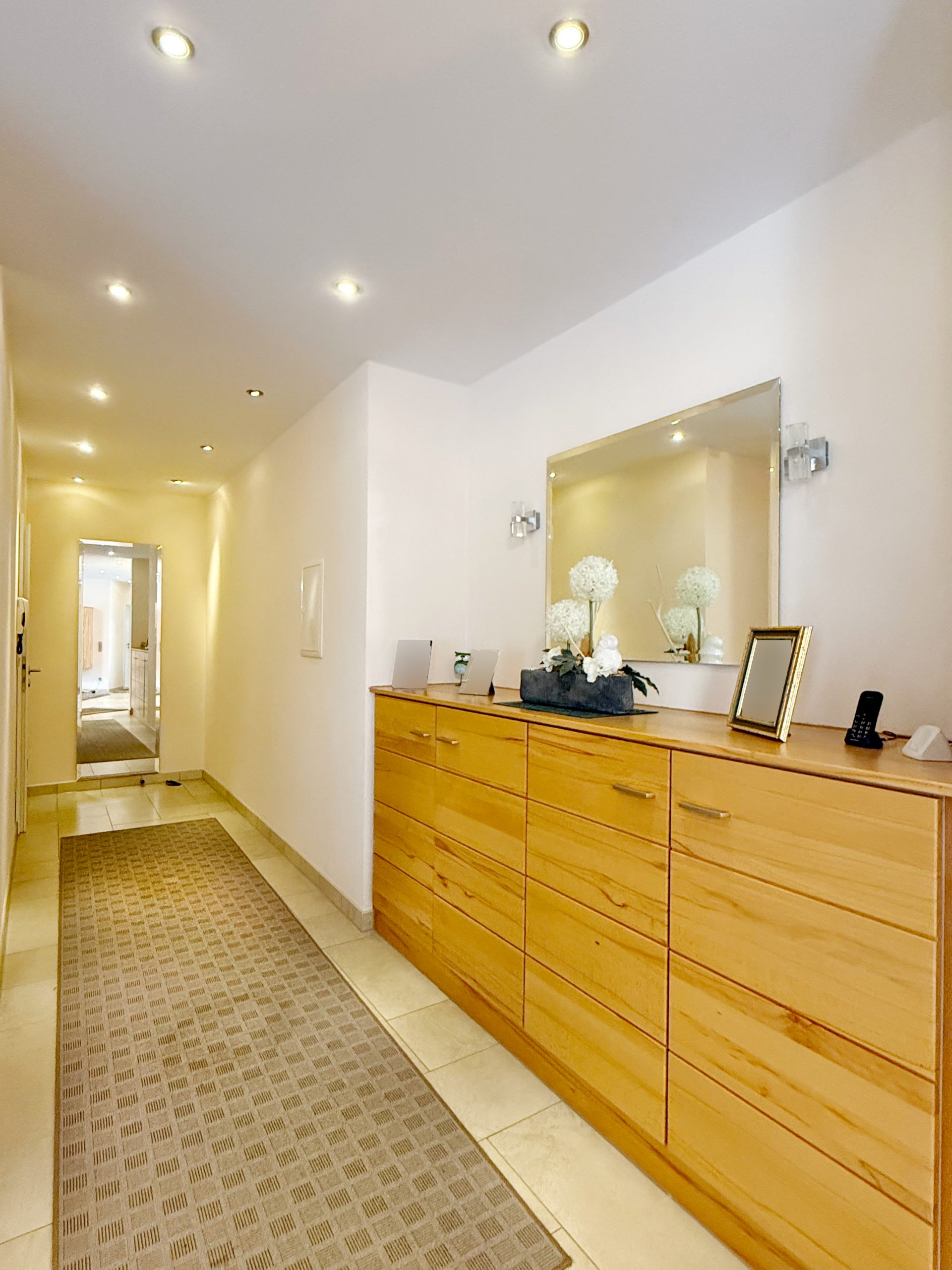 Bereits beim Betreten der Wohnung fällt der großzügige Wohnbereich auf, der viel Platz für einen gemütlichen Wohn- und Essbereich bietet. Von hier aus gelangt man direkt in die offen gestaltete, moderne Küche, die mit hochwertigen Einbauten und ausreichend Arbeitsfläche ausgestattet ist – ideal für alle, die gerne kochen und Gäste empfangen.