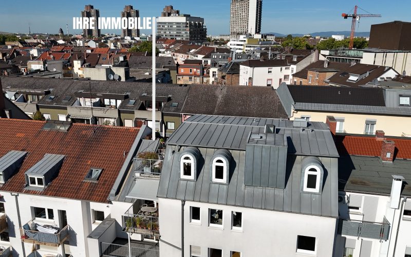 Ein echtes Highlight dieser Penthousewohnung ist die sonnige Dachterrasse, die sowohl vom Wohnzimmer, als auch vom einem der Schlafzimmer aus zugänglich ist und einen individuellen Rückzugsort unter freiem Himmel bietet. Die großzügigen Außenflächen machen diese Wohnung zu einer echten Wohlfühloase hoch über den Dächern Mannheims.